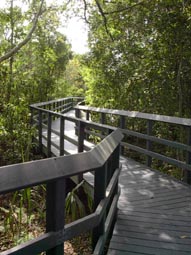 | The Cypress Creek Trail is a 1/2 Mile loop through a low Tropical Hardwood Hammock and a Red Maple and Bald Cypress Wetland. On either sides of the boardwalk can be seen lush tropical growth of native small trees and shrubs.